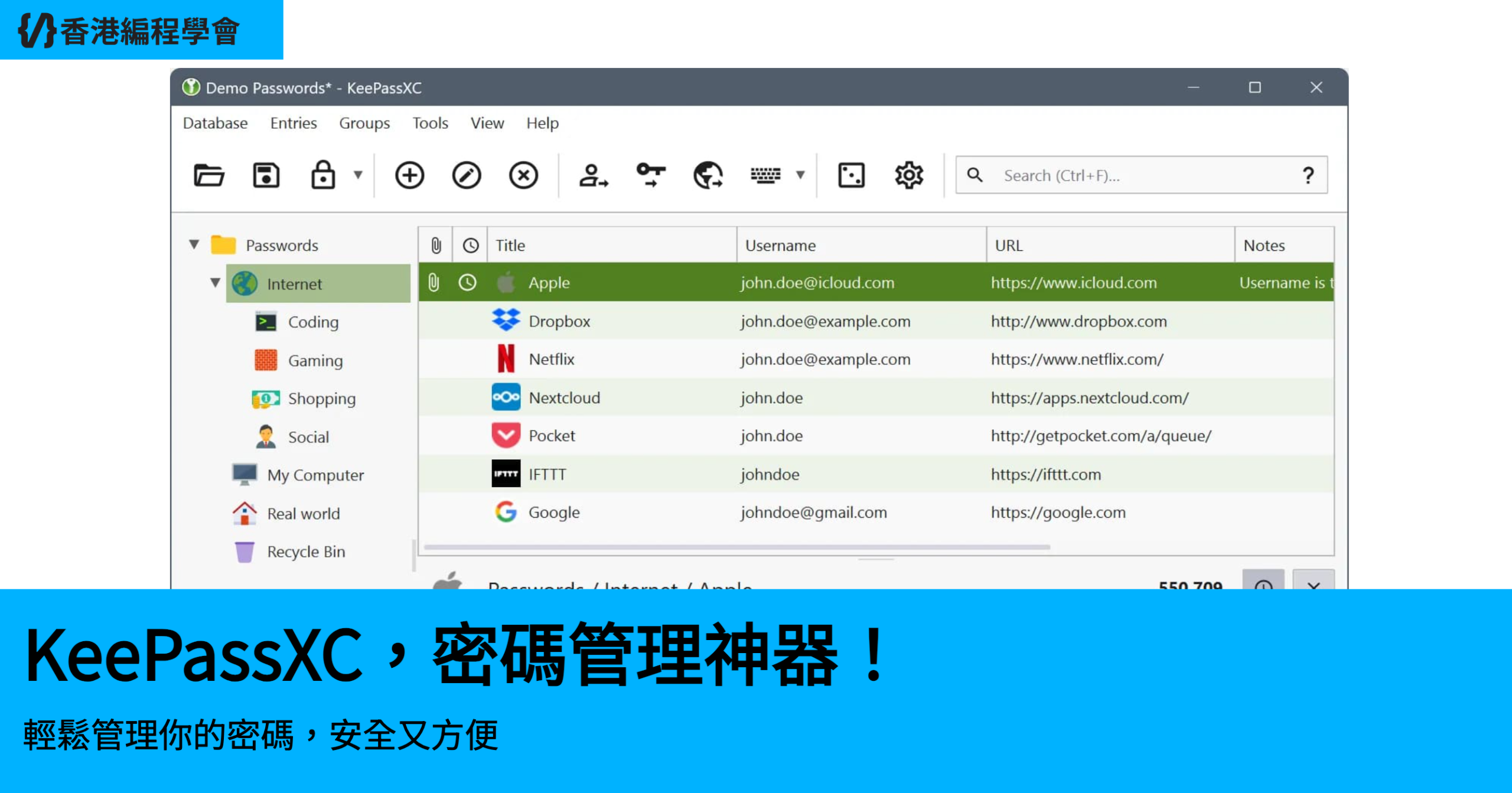 唔使再擔心忘記密碼或者用弱密碼,KeePassXC支援跨平台,用起嚟超方便。無論係電腦定手機,都可以同步使用。快啲試下啦,徹底解放你嘅腦袋!