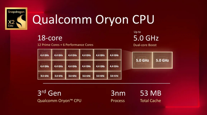 高通喺2025年憑Snapdragon X系列大紅大紫,終於等到續集喇!喺夏威夷年會上,佢哋公布咗X2 Elite同X2 Elite Extreme呢兩款旗艦晶片,後者時脈推到5GHz,係Snapdragon X系列新配置。呢啲ARM晶片主打能源效率,首代已經令Windows筆電電池續航勁長,表現又唔輸x86對手。今次X2系列用3nm製程,CPU性能提升75%,GPU每瓦性能翻倍,NPU衝到80 TOPS,AI應用更勁。