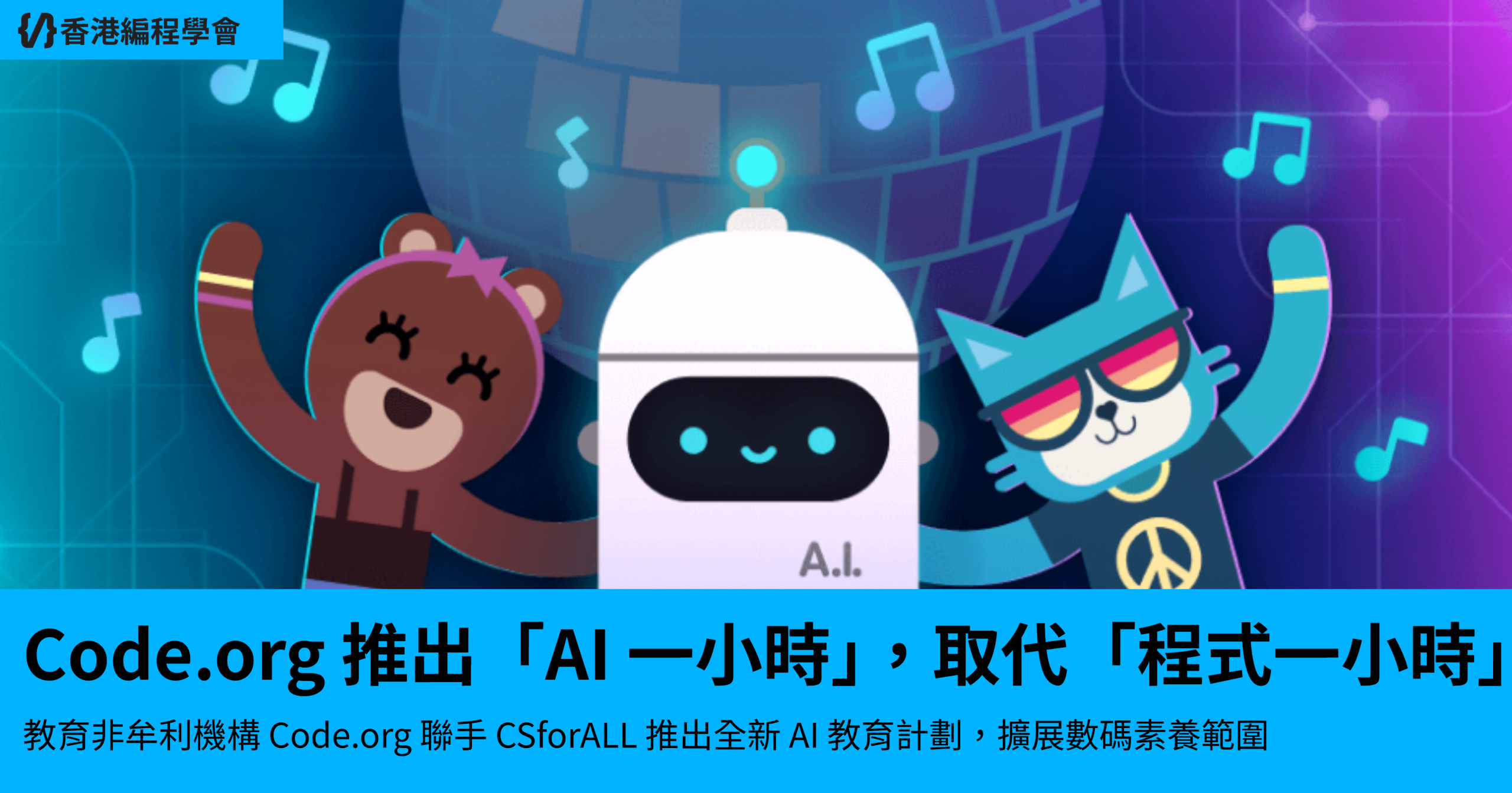 教育非牟利機構 Code.org 喺度同 CSforALL 合作,推出咗個全新嘅「AI 一小時」計劃,呢個就係為咗取代之前好出名嘅「程式一小時」,目的係透過編碼同 AI 工具嚟準備學生同屋企人面對 AI 驅動嘅未來世界。