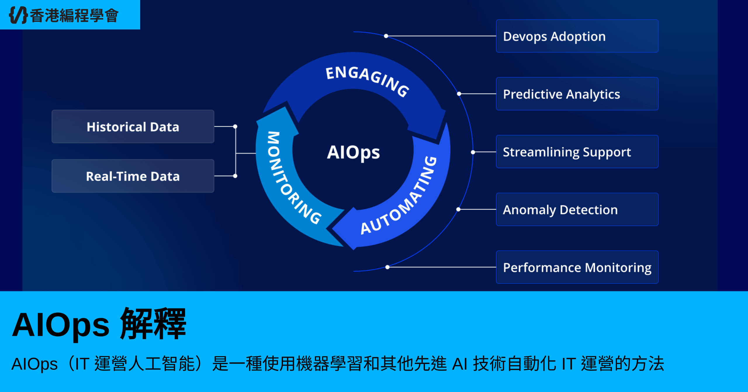 AIOps (IT 操作嘅人工智能) 係一種用機器學習同其他先進 AI 技術自動化 IT 操作嘅方法。
