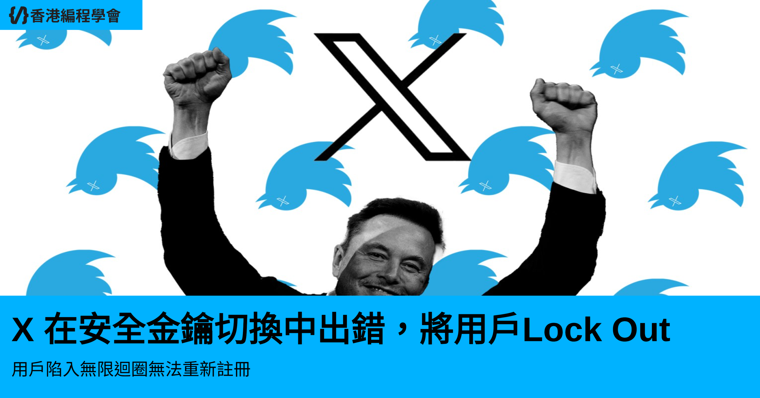 10月24號,X 喺一篇 post 入面話,佢要求用 passkeys 或硬件安全金鑰(如 YubiKeys)做二步驟驗證嘅用戶,用 x.com 域名重新註冊。(用 authenticator app 嘅用戶冇事。)