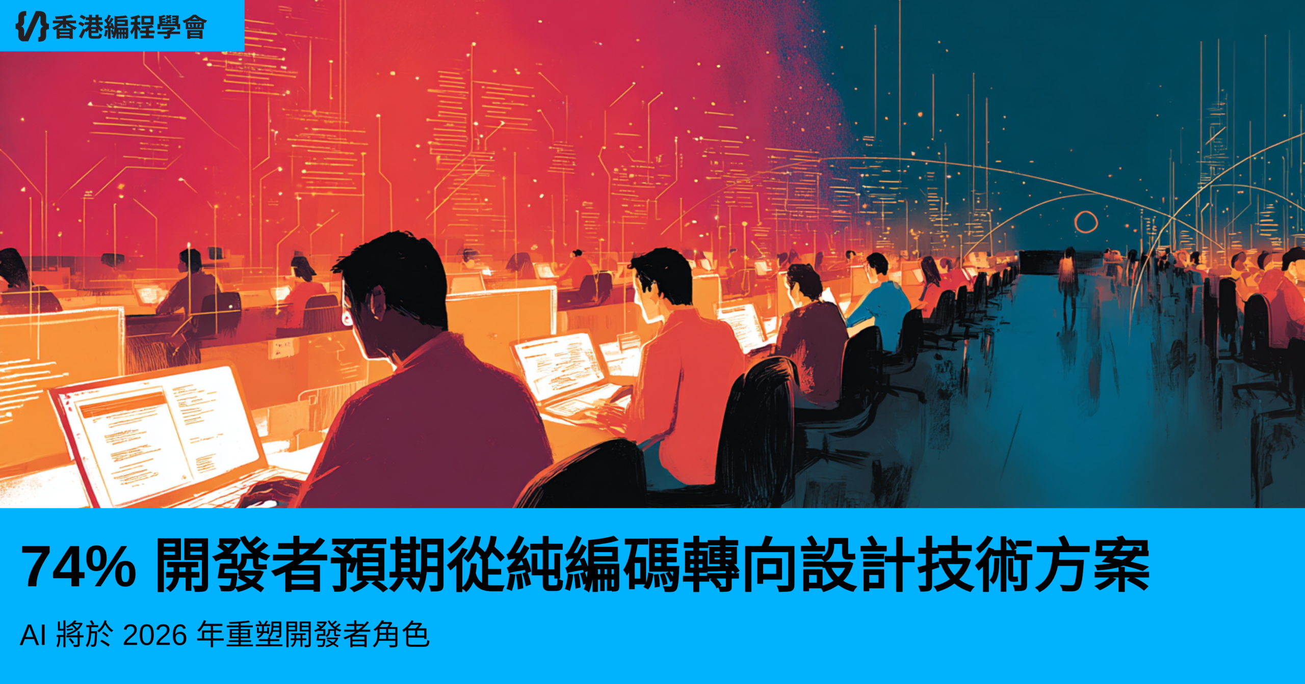 根據最近嘅調查,74% 開發者預期會因為 AI 嘅進步,而用少啲時間嚟 coding,多啲時間設計技術方案。
